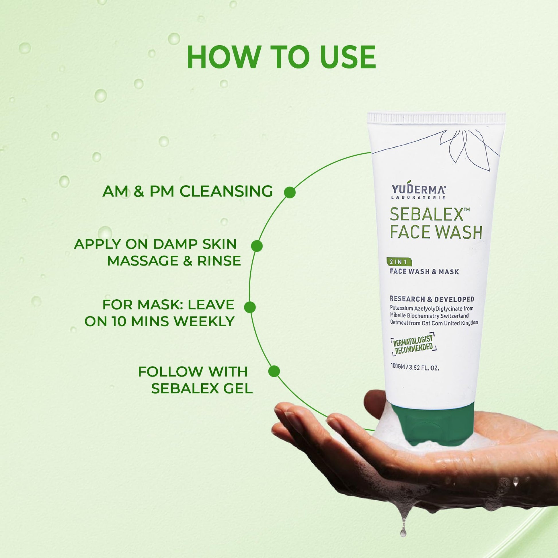 YUDERMA Sebalex Face Wash for Oily and Acne Prone Skin, 100gm Medi-Acne Face Wash & Mask, Sulphate & Paraben Free, Non-Comedogenic Face Wash for Women and Men