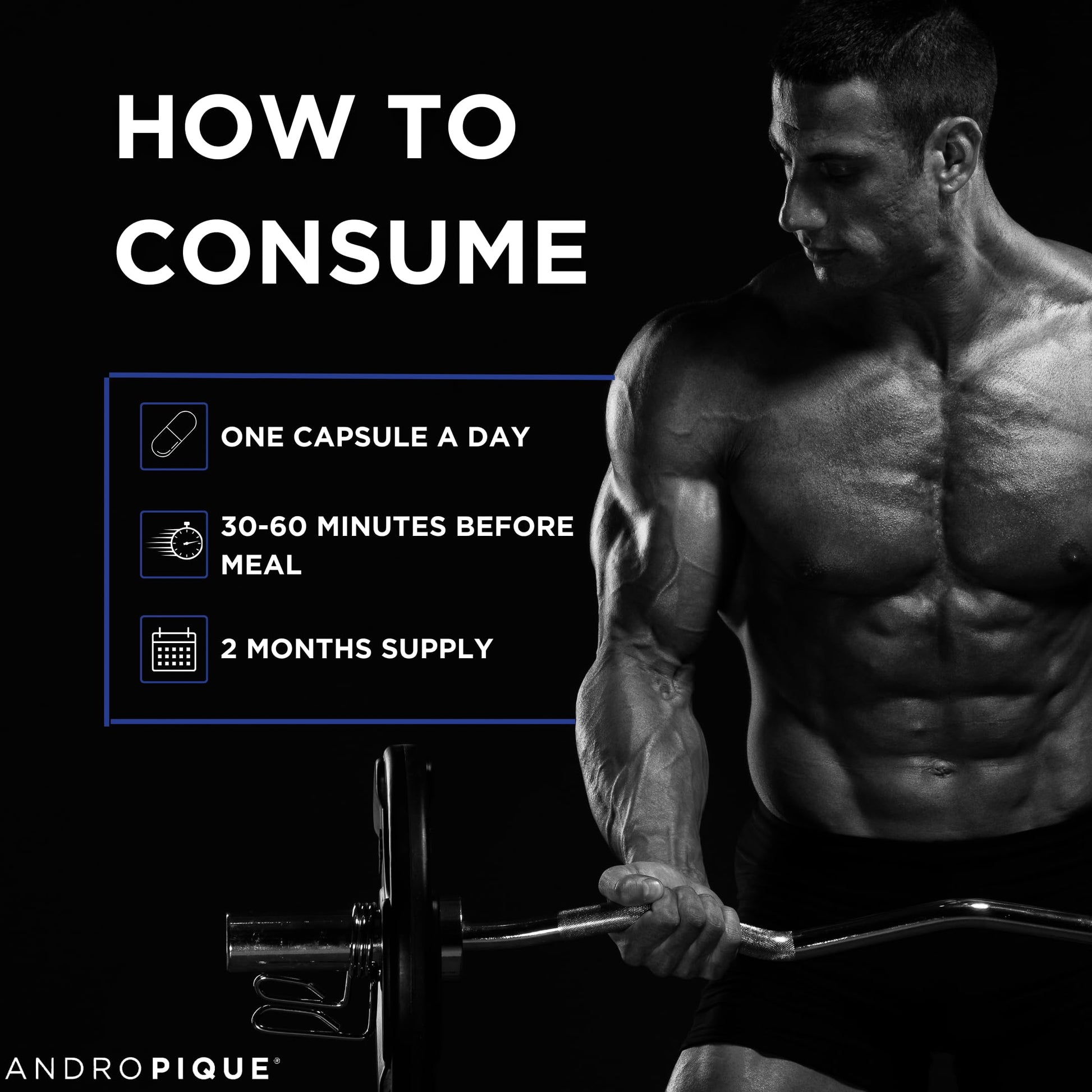 ANDROPIQUE – Natural Testosterone Supplement for Men, Fenugreek seed extract, (60 Capsules) 2 Months Supply, One capsule per day Serving.