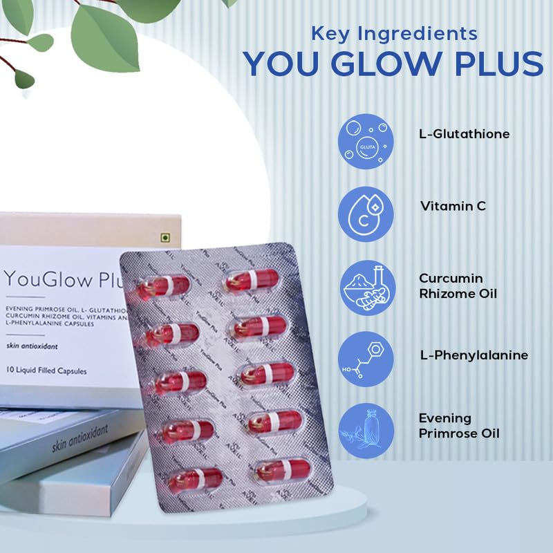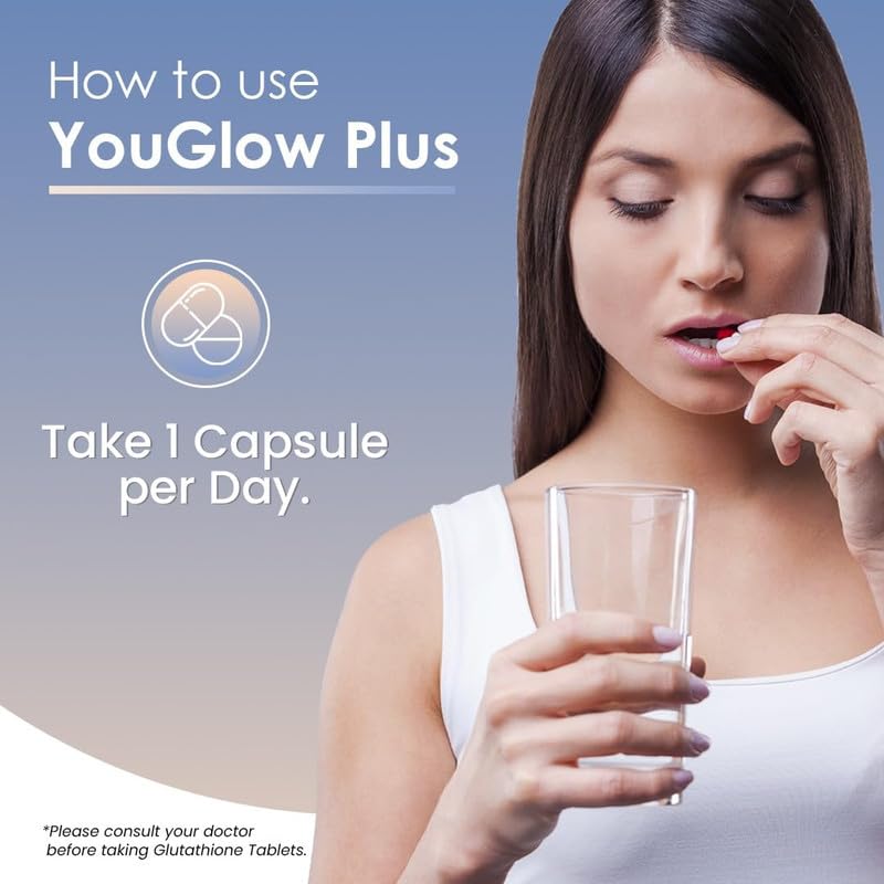 - Natural & Safe: AVEIL YouGlow Plus Tablets are formulated with natural ingredients, ensuring a safe and effective way to enhance your skins glow and reduce dark circles without any harmful side effects.