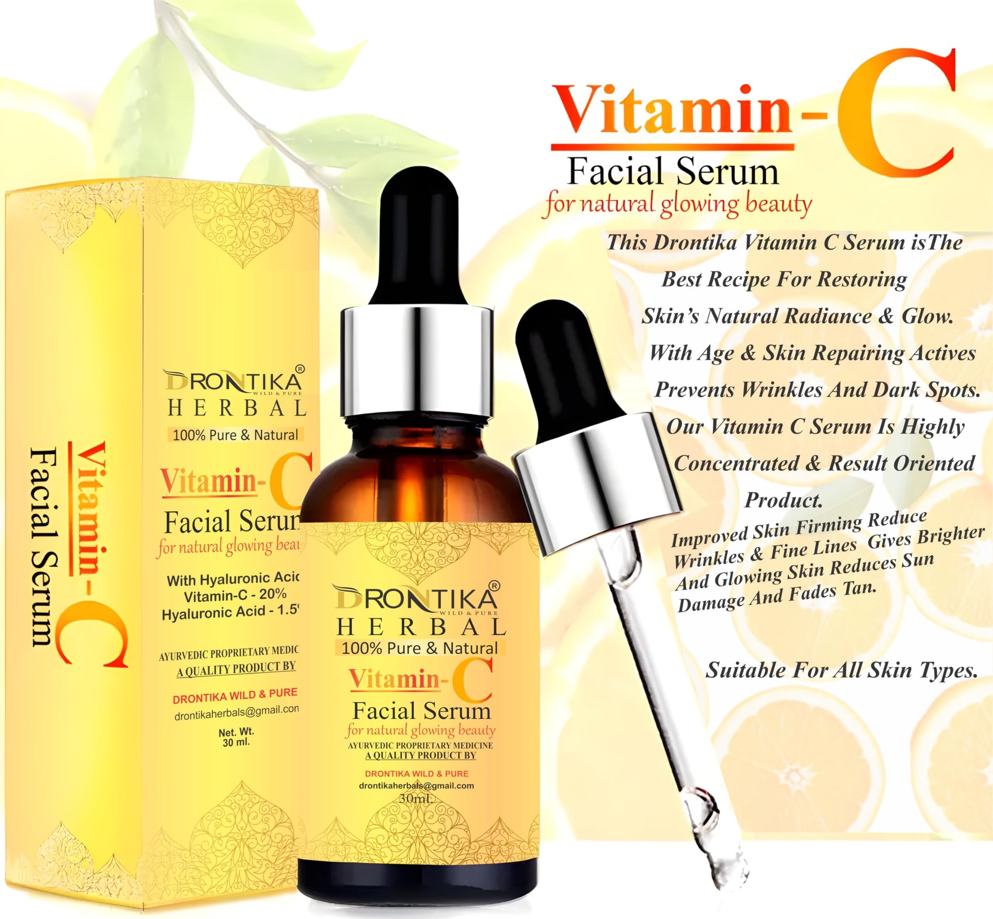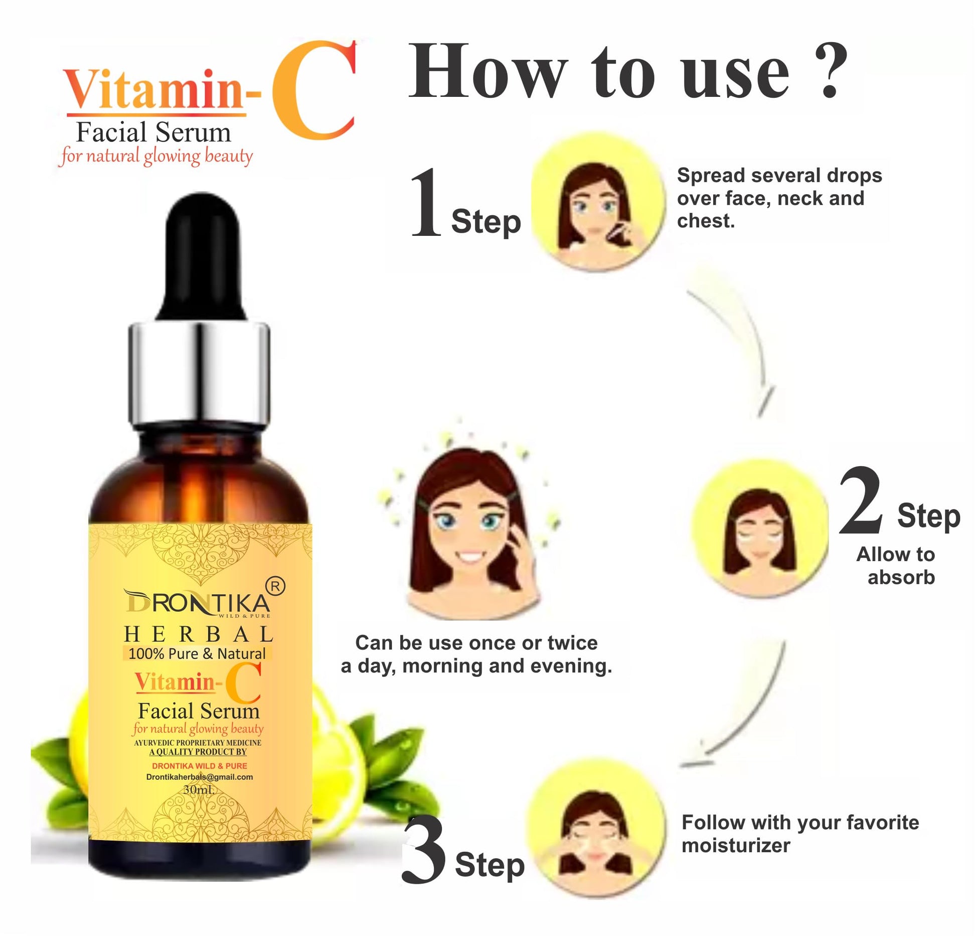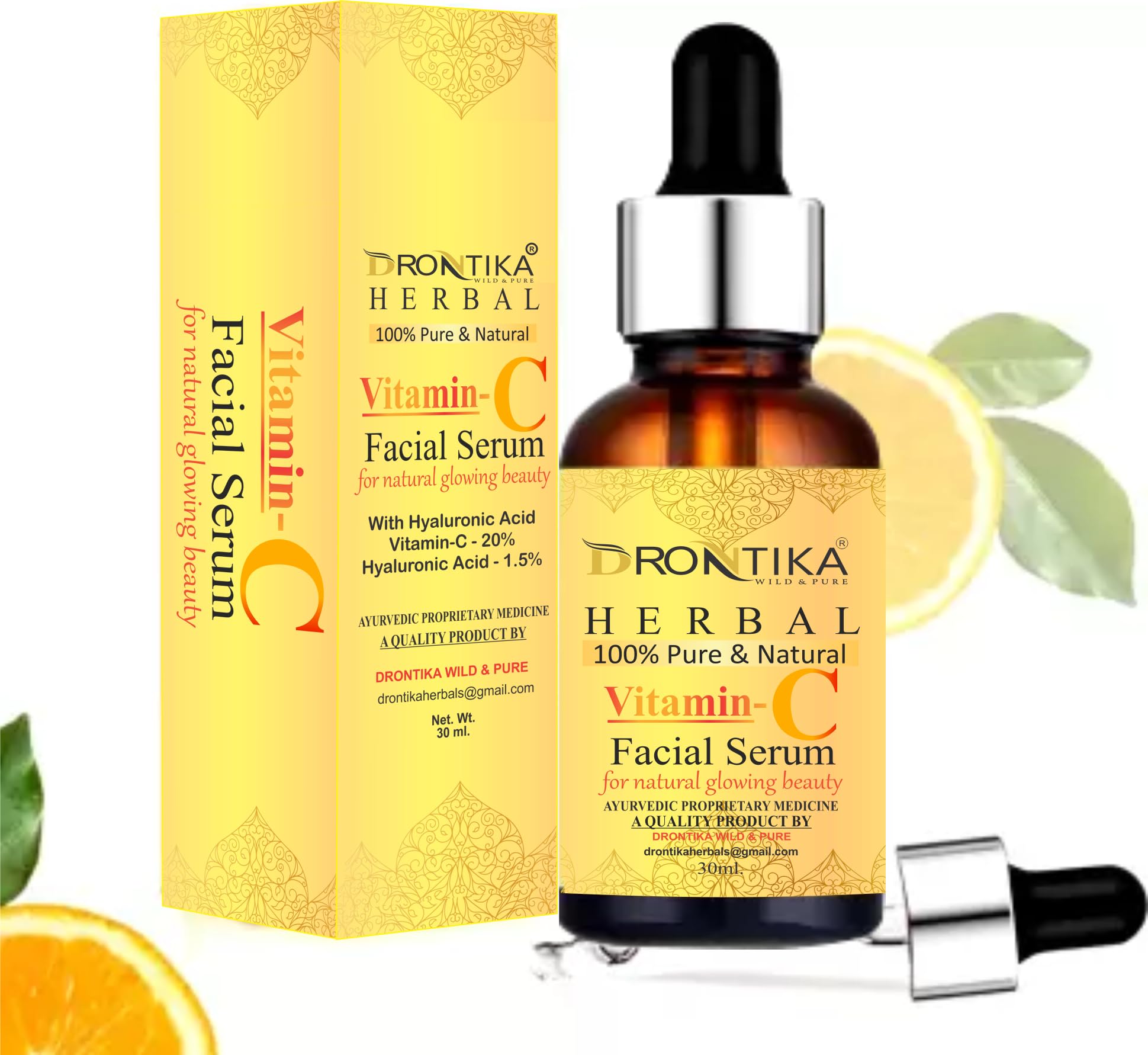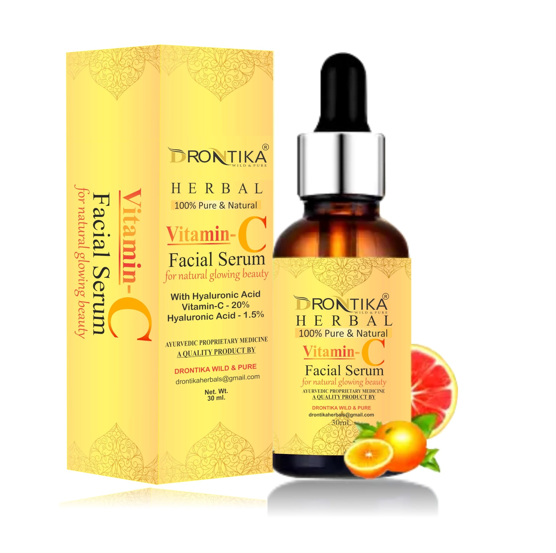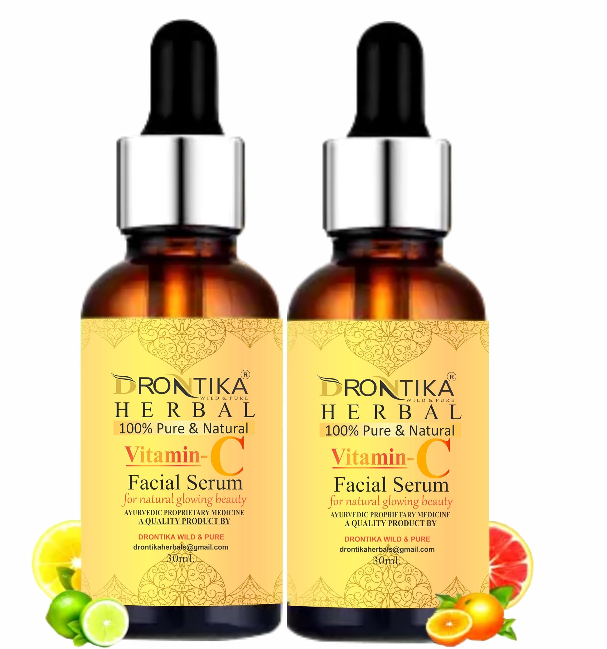 Drontika Herbal Vitamin C Face Serum, For Nourished & Bright Skin with Antioxidant Rich Vitamin C & Kakadu Plum Extract, Non Greasy, 30 ml (Pack Of 2)