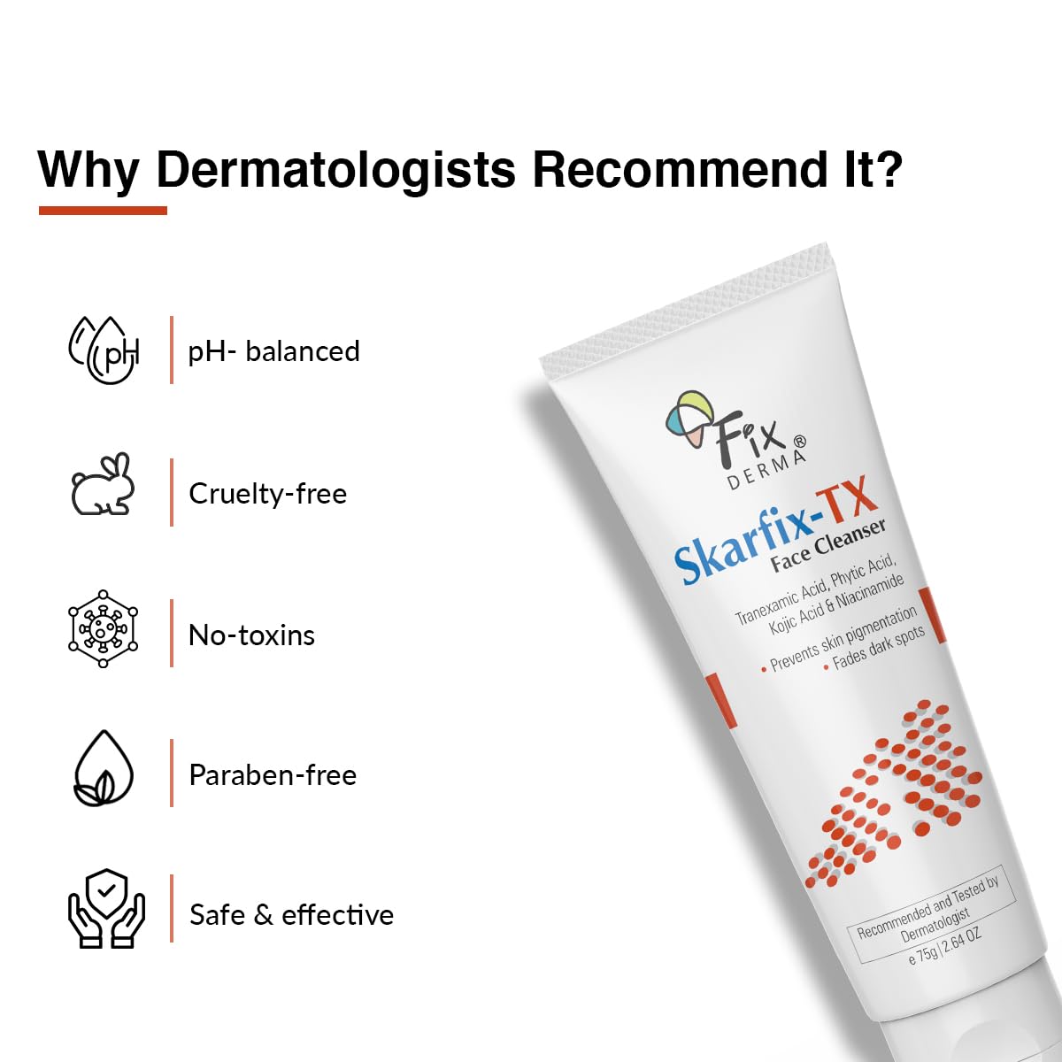 Fixderma Skarfix -TX Face Cleanser with Tranexamic Acid, Kojic Acid & Niacinamide | Kojic Acid Face Wash | Pigmentation Face Wash for All Skin Types | Face Wash for Women | Face Wash Men - 75gm