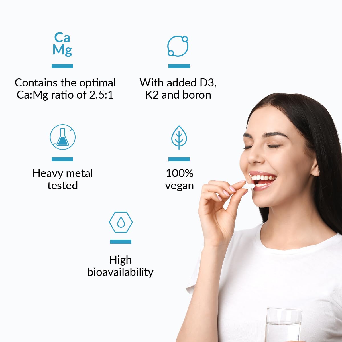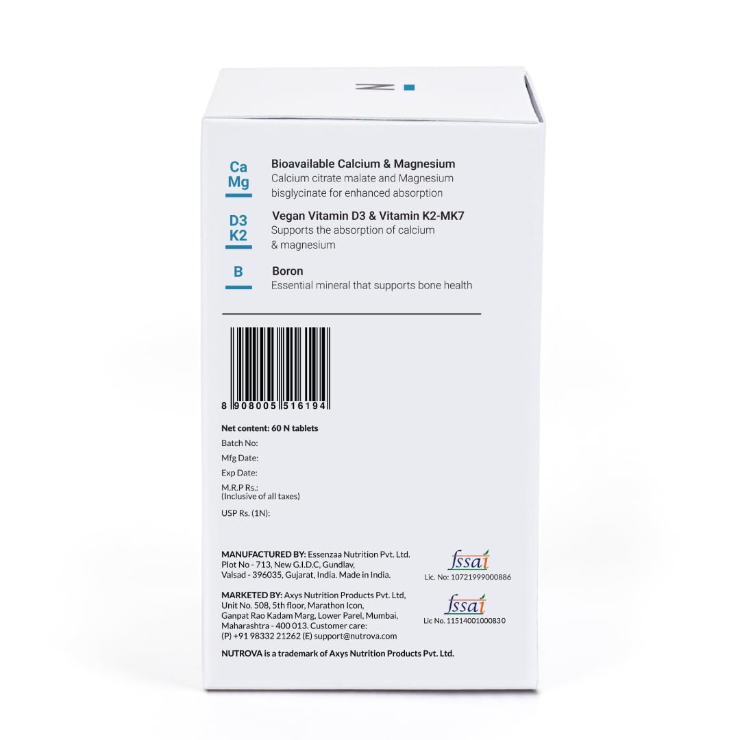 Nutrova Calcium+Magnesium Bioavailable Calcium Magnesium with Vitamins D3, K2, Boron – 60 Vegan tablets