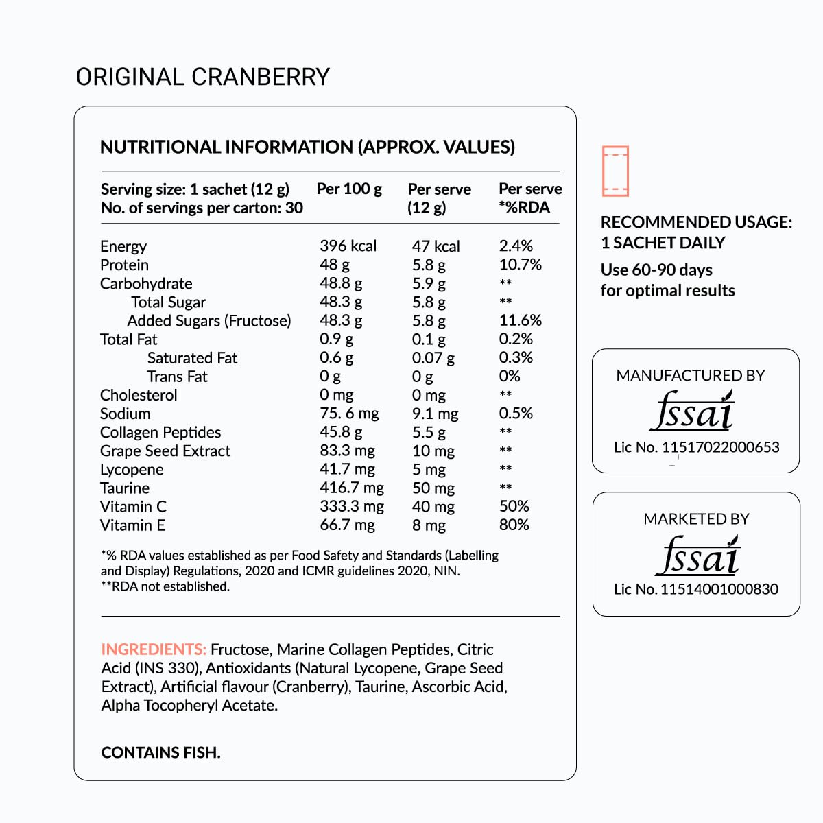 - HOW IT WORKS: Our formulation contains hydrolyzed collagen with smaller chains of collagen that the body can easily absorb and use. Along with the other skin-healthy nutrients, it comes in a powder form (in sachets) that can be easily mixed into water. It has a cranberry flavour, contains no artificial sweeteners and is tested for heavy metals.