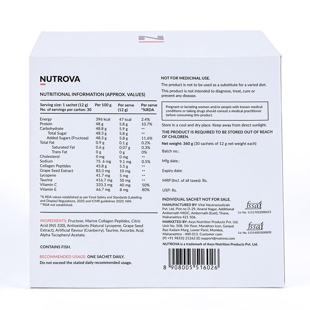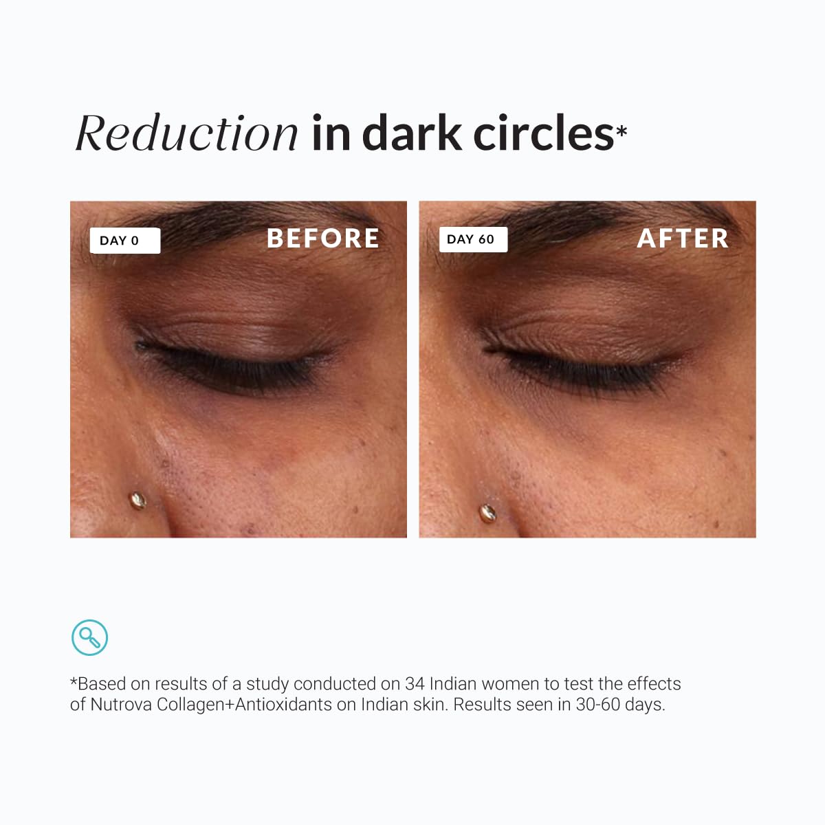 - CLINICALLY TESTED ON INDIAN SKIN: In a first-of-its-kind clinical study on Indian women, Nutrova Collagen+Antioxidants has shown to improve skin elasticity, hydration and texture. It also reduced under-eye dark circles, skin dullness, wrinkles, pigmentation spots and pore size.