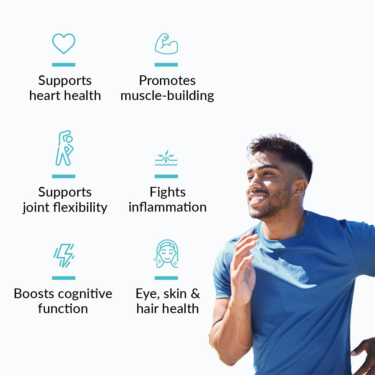 - BENEFITS OF OMEGA 3 FATS: They support skin, hair, brain, heart, eye and joint health, and can help with postexercise recovery. They help curb inflammation and promote immunity.