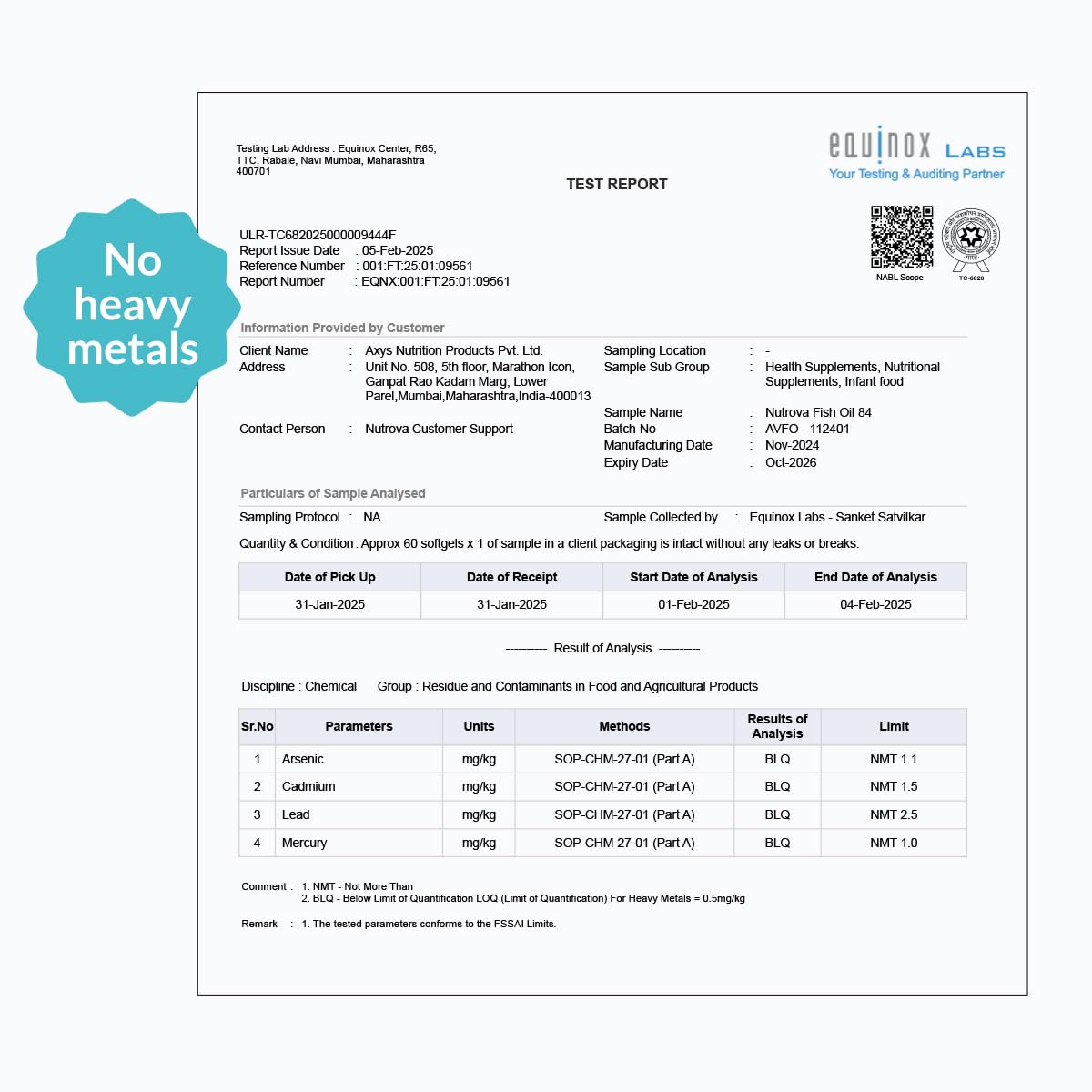 - HIGH PURITY FISH OIL: Nutrova Fish Oil 84 is one of the highest-purity fish oils available, with omega-3 fats making up 84% of each capsule.