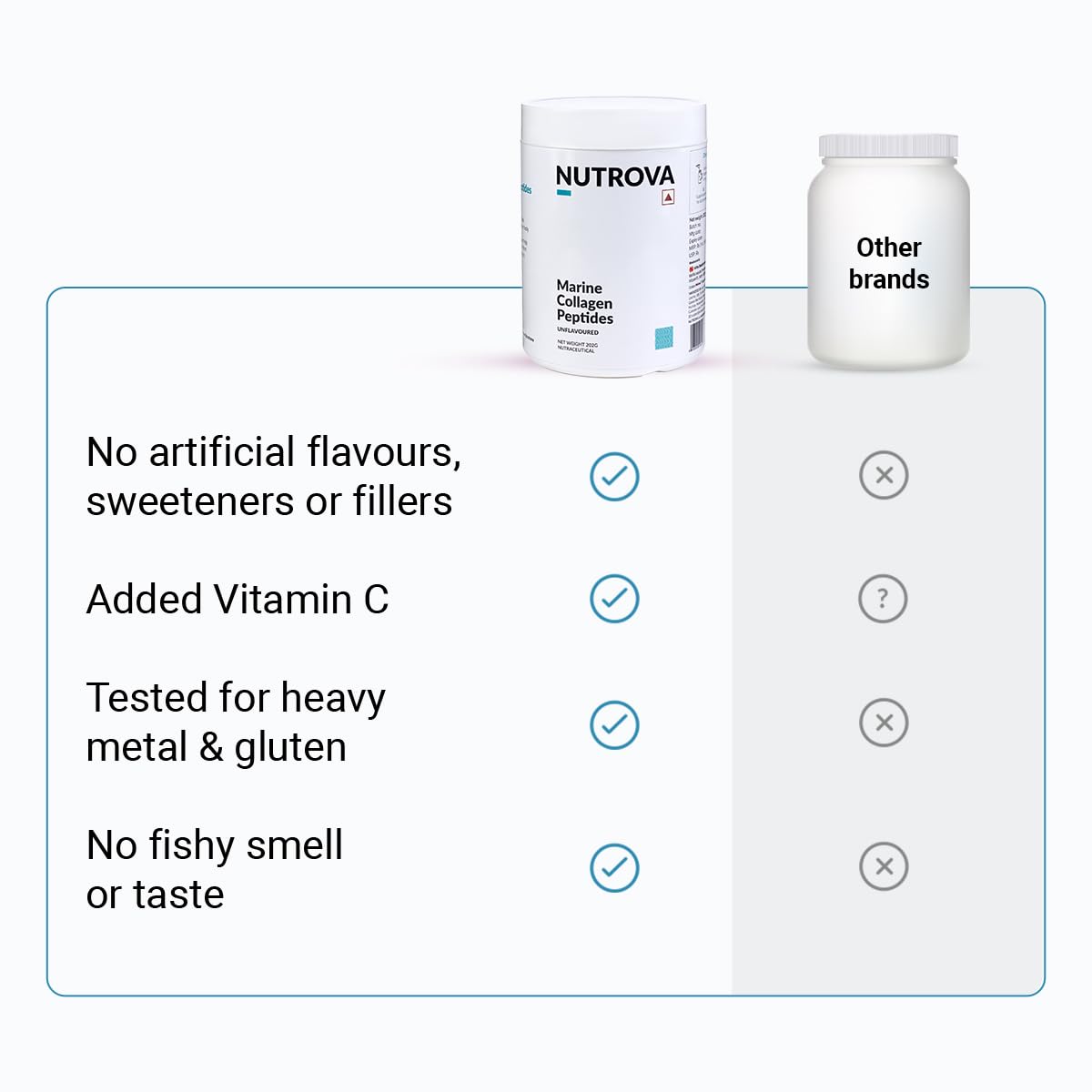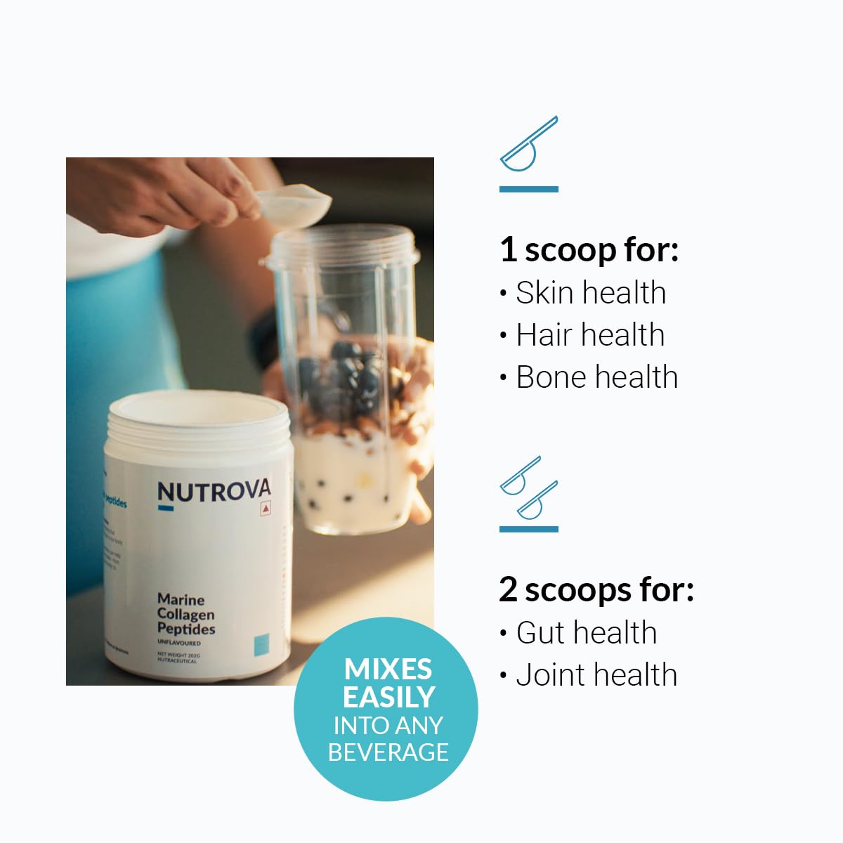 NUTROVA Marine Collagen Peptides for Men & Women, For Healthy Skin & Hair, Nails, Bones - Anti-Aging Supplement – Unflavoured Easy to Mix Powder (200gm) – Neutral Smell & Taste