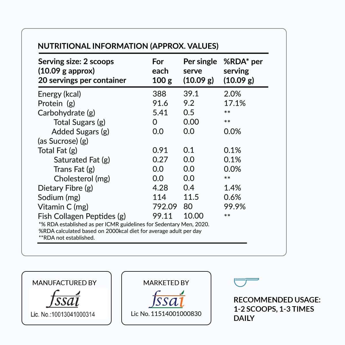 - UNFLAVOURED, SUGAR FREE COLLAGEN PEPTIDES: With no fishy smell or taste, these collagen peptides can be easily added to any hot or cold beverages. This product has no added sugars, artificial sweeteners, flavours or additives making it a very pure marine collagen peptide.