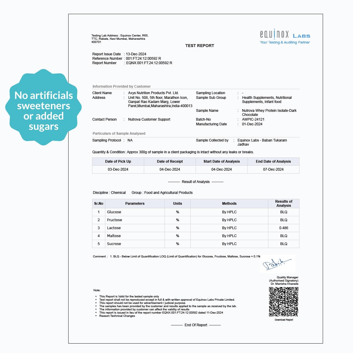 - NO SUGAR OR ARTIFICIAL SWEETENERS: Taking gut health into consideration, Nutrova Whey Protein Isolate also doesn’t contain any sugar or artificial sweeteners – which you won’t miss, because of its neutral dark chocolate flavour.