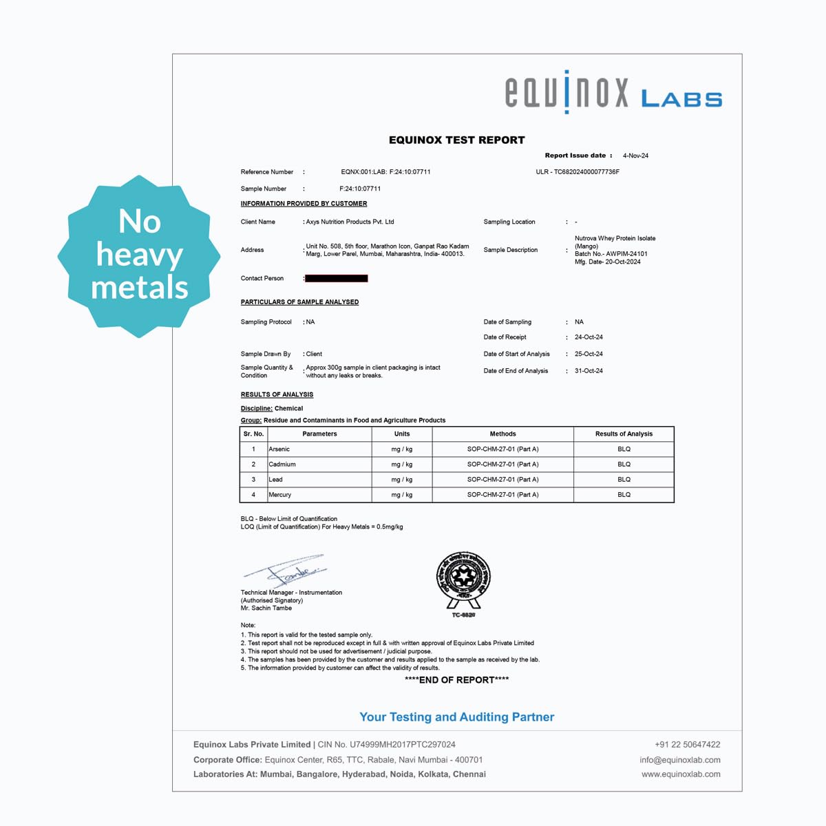 Nutrova Whey Protein Isolate Mango 1Kg (Pack of 1) with 24g Protein Every 30g Scoop | Easy to Digest Health Supplement for Men & Women with no Added Sugars | 5.5g BCAAs, Sweetened with Stevia.