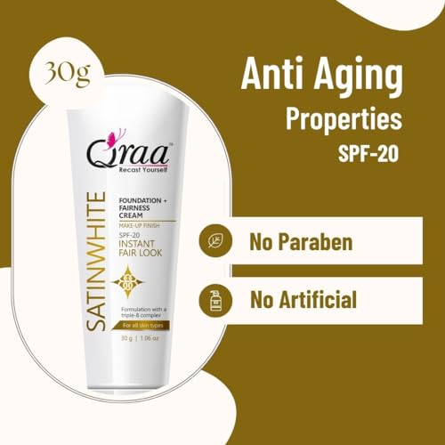 - Get ready to embrace your flawless, fair complexion with Qraa SatinWhite Cream! This magical 30gm formula is not just a foundation fairness cream, but your ticket to an instant fair look. Say goodbye to dull and uneven skin tone, and hello to a radiant glowing skin.