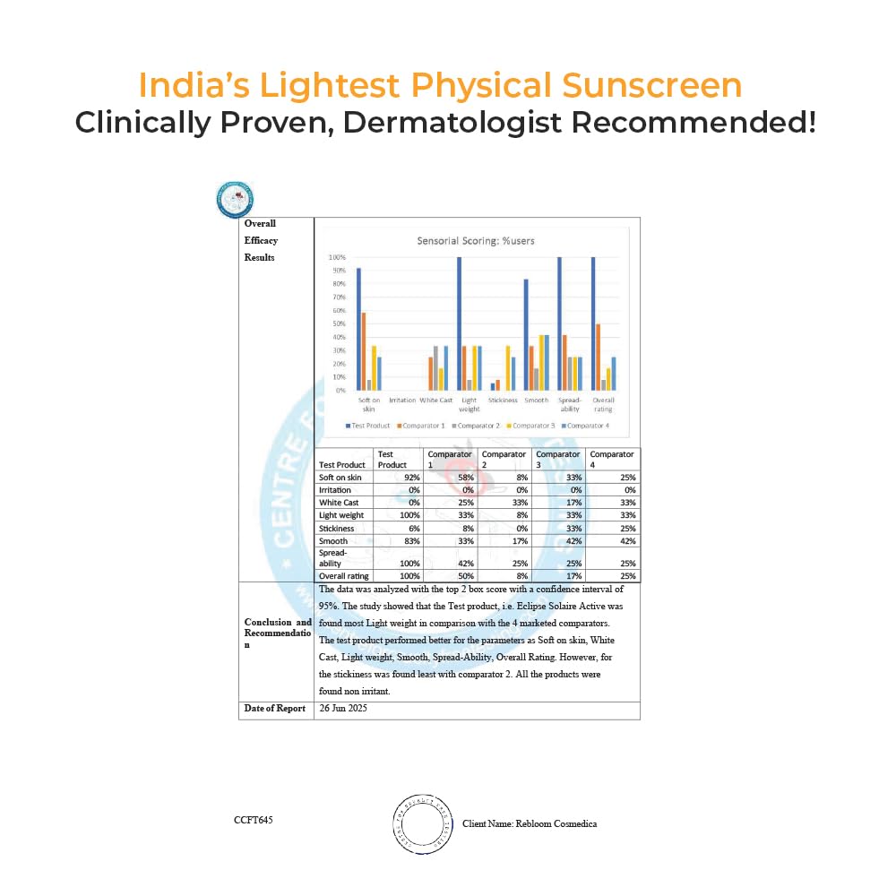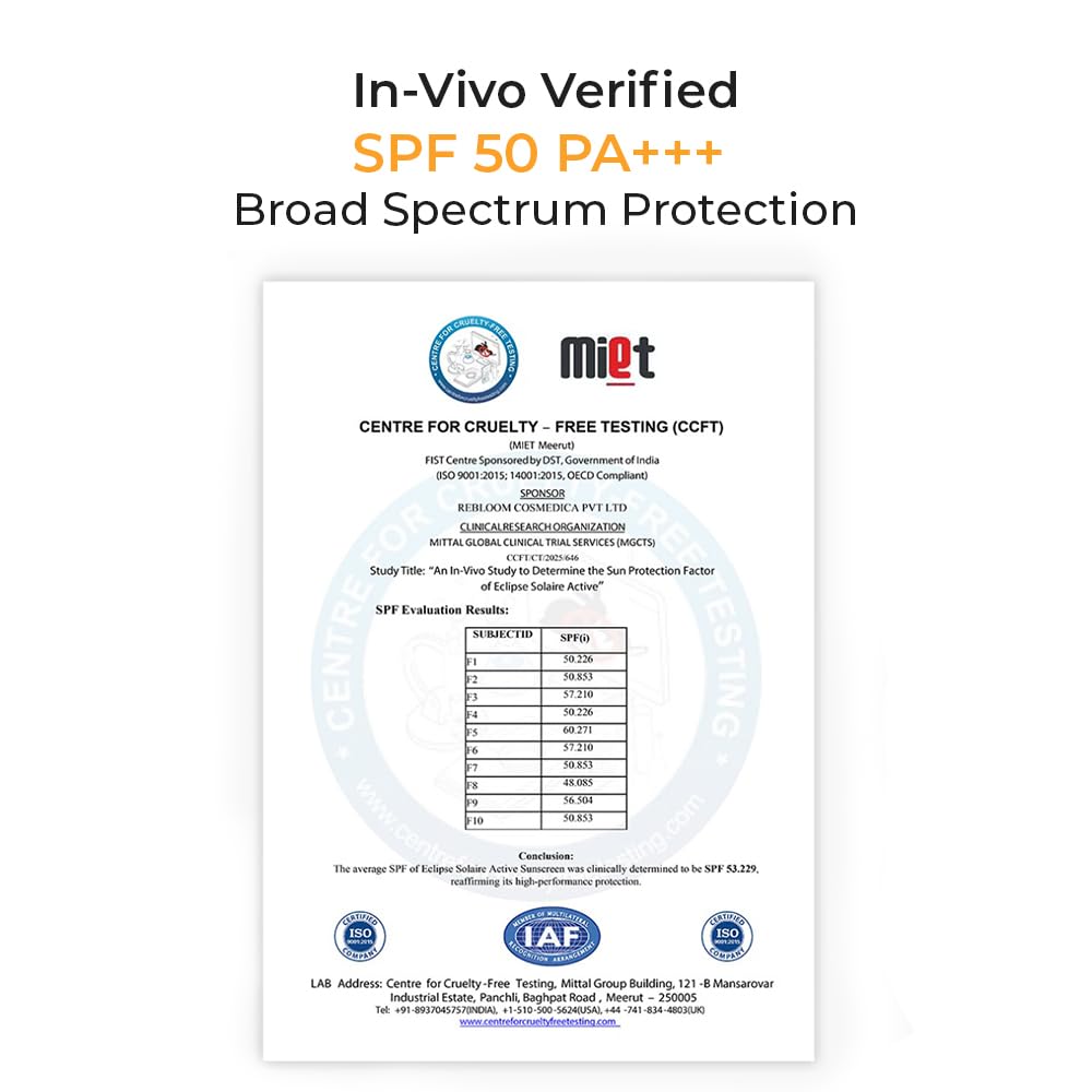 YUDERMA Eclipse Solaire Active Sunscreen SPF 50 PA+++ | Clinically Tested | No White Cast | Broad Spectrum UVA/UVB & Blue Light Shield | Lightweight, Non-Greasy Formula for All Skin Types – 60ml